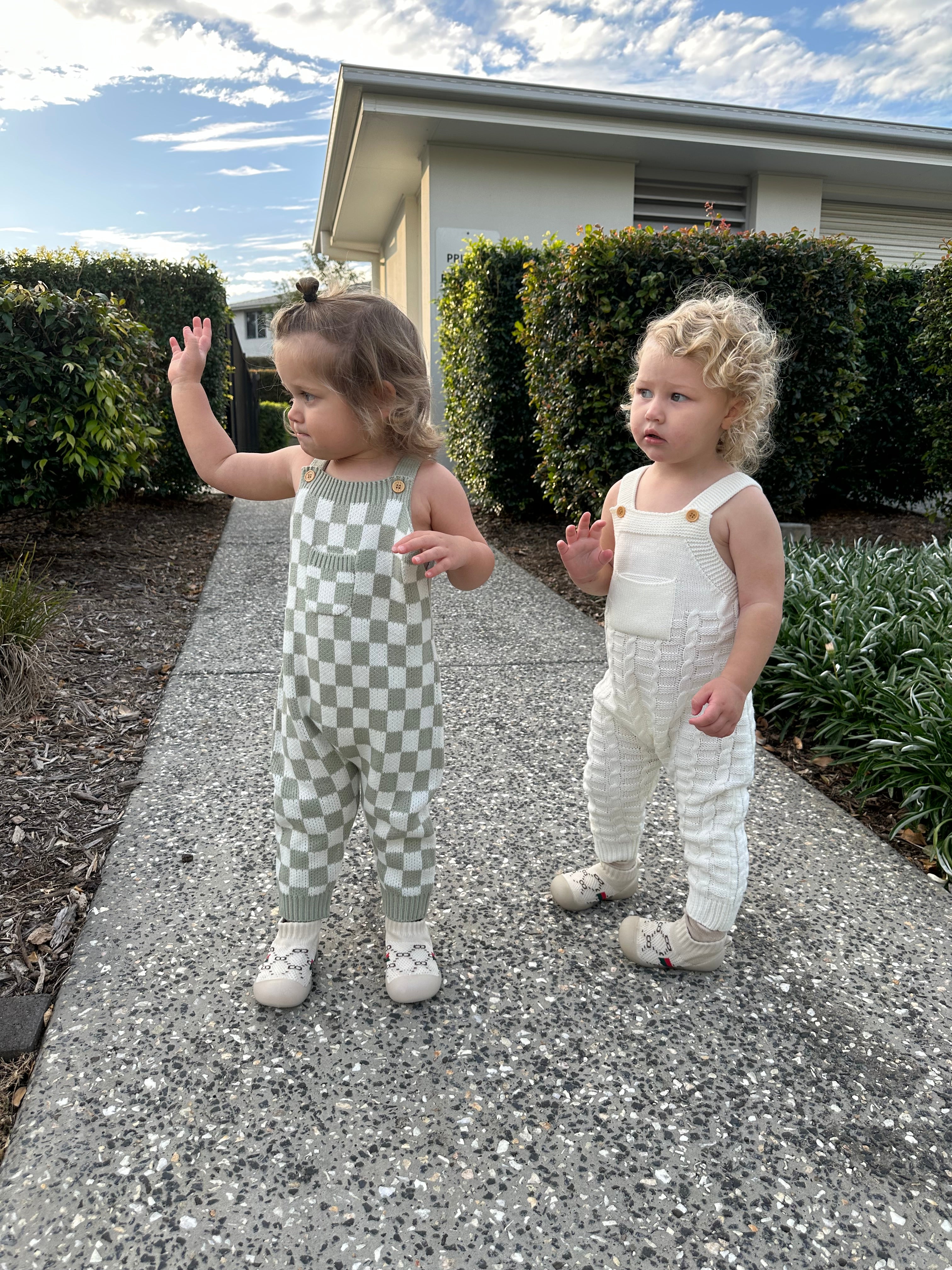 Checkered Knit Overalls Green